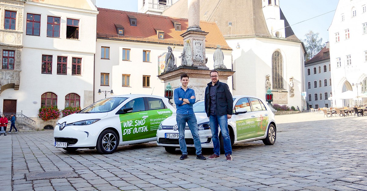 Dementsprechend schnell war für uns als Internetagentur auch klar (bereits 2013), dass die Zeit reif ist für Elektroautos. Denn die Gründe und die Fortschritte sprechen für sich: Voll-Elektroautos sind leise, sie verursachen keine lokalen Emissionen, sie sind zuverlässig, und sie bieten eine Menge Fahrspaß. Und ja – man könnte die beiden E-Auto-Fahrer Stefan Manhart und Jakob Härter mittlerweile als kleine "Fan-Boys" bezeichnen. So kommen dann auch solche Aktionen von Jakob Härter zustande: