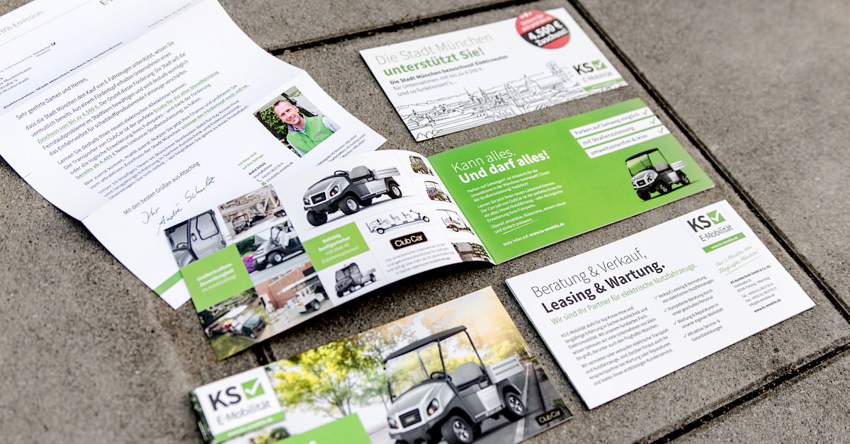Unter der Adresse ks-emobile.de haben wir einen neuen Onlineauftritt (inkl. Logodesign, Briefbogen, Visitenkarte, Broschüre und Post-Mailing) entwickelt, welches v.a. die Zielgruppe der Münchner Mittelständler anspricht – hierbei ganz konkret die Garten- & Landschaftsbauer, Hotels und Hausverwaltungen. Diese Firmen profitieren sehr stark von den Nutzfahrzeugen von KS und der Elektro-Förderung der Stadt München.