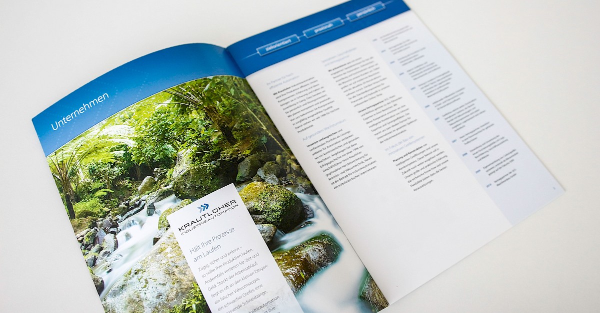 Krautloher Industrieautomation kümmert sich darum, dass Produktionsprozesse flüssig laufen. Das neue Design sollte dies stärker widerspiegeln und für mehr Eigenständigkeit sorgen. Die drei Pfeile stehen hierbei für die drei Produktbereiche Vakuumsauger, Greifersysteme und Antriebstechnik. Das Logo war die erste Maßnahme des kompletten Redesigns, das mittlerweile auch Imagebroschüren und Messestand umfasst.