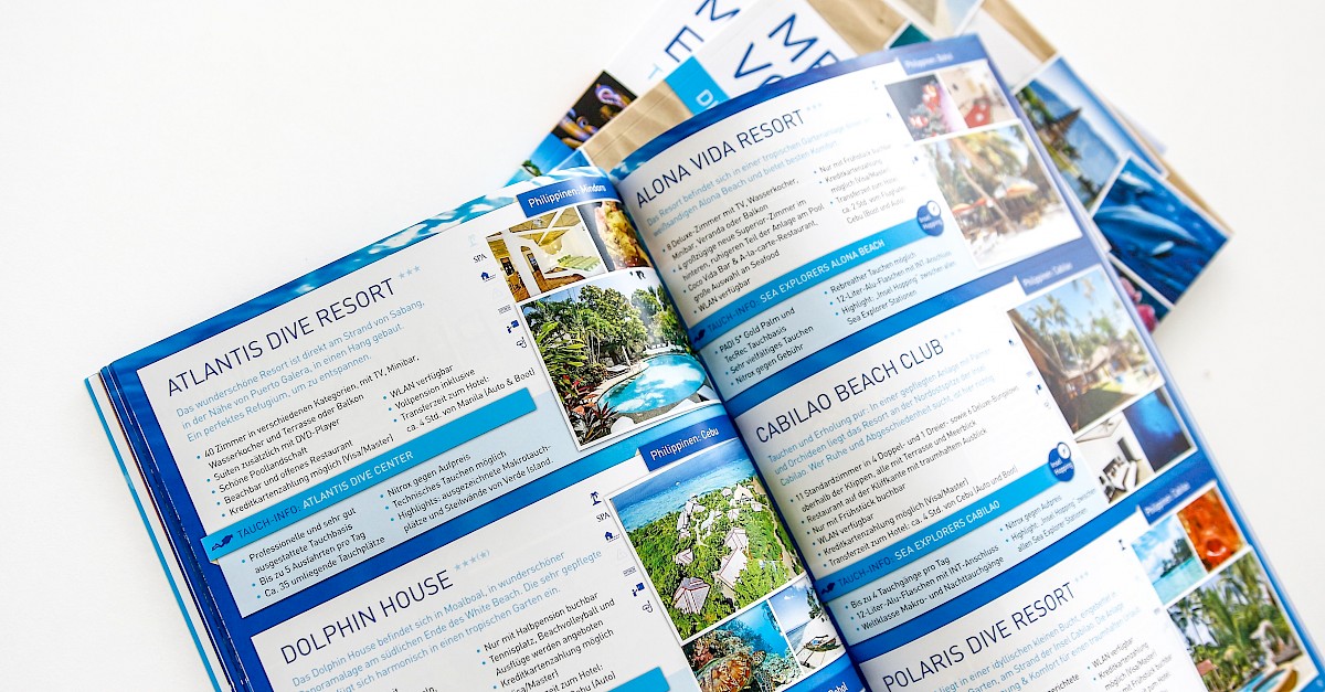 Das bisherige Design war relativ düster und mittlerweile etwas altbacken - es fehlte an »Urlaubsstimmungsmache«. Wir aktualisierten das bestehende Logo (in Details, um die Wiedererkennung zu behalten), schufen diverse neue, stimmungsvolle Anzeigen-Vorlagen sowie Messeflyer und Newsletter-Templates. Der anschließende Hochglanz-Reisekatalog mit 88 Seiten war ein kleines Mammutprojekt, das sich aufgrund der vielen Daten und Bilder mehrere Monate hinzog. Das Ergebnis jedoch war die Mühe mehr als wert.